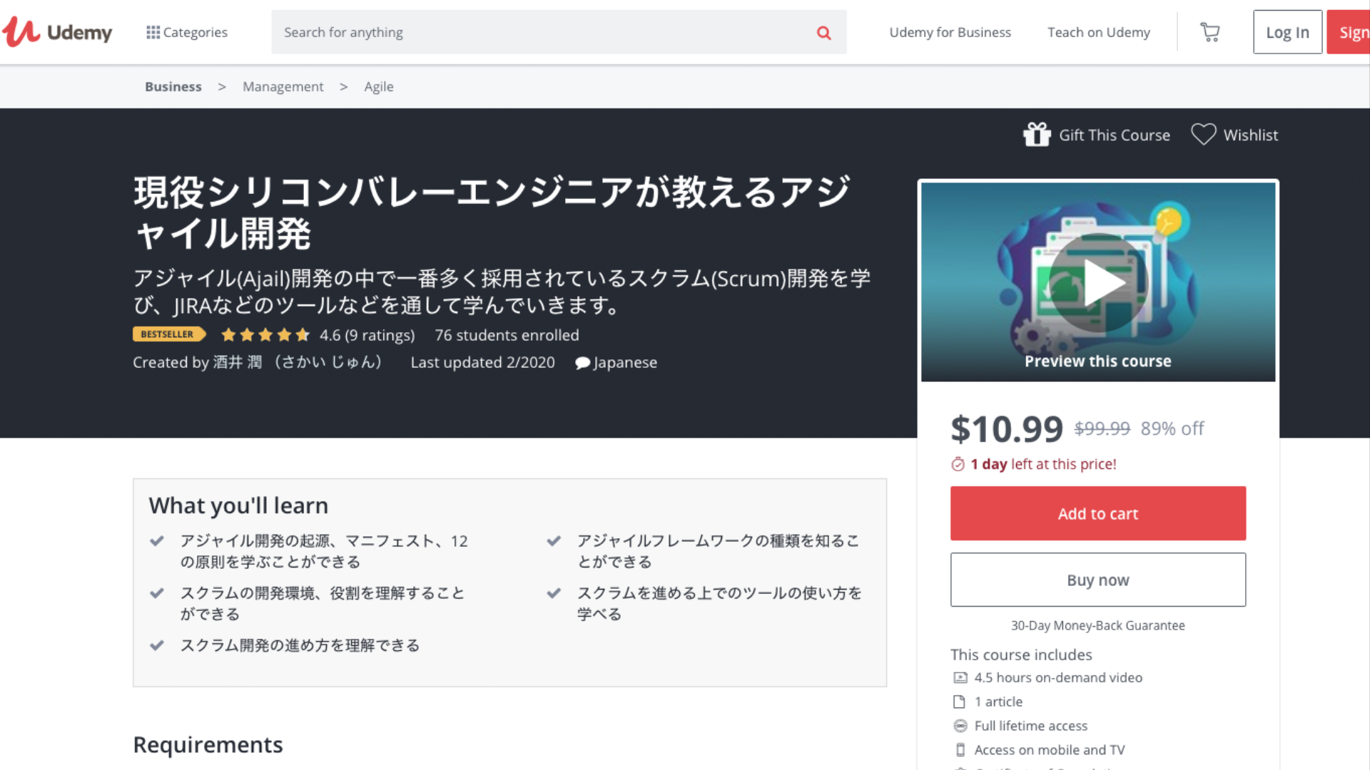 このコースでは、あらゆるレベルのビジネスプロフェッショナルが理解しやすい方法でアジャイルとスクラムの基本をカバーします。アジャイルとスクラムの基礎に関するこのコースから得られる知識を使用して、アジャイルとスクラムに適した環境を作成>できます。アジャイルとスクラムの開発方法を取り入れれば、プロジェクトが失敗するのを防ぐことにも繋がる可能があります。このAjailプロジェクト管理方法は、チームワークが特に重要であり、チームメンバー間の相互信頼を高め、対人関係を改善することもできるでしょう。
