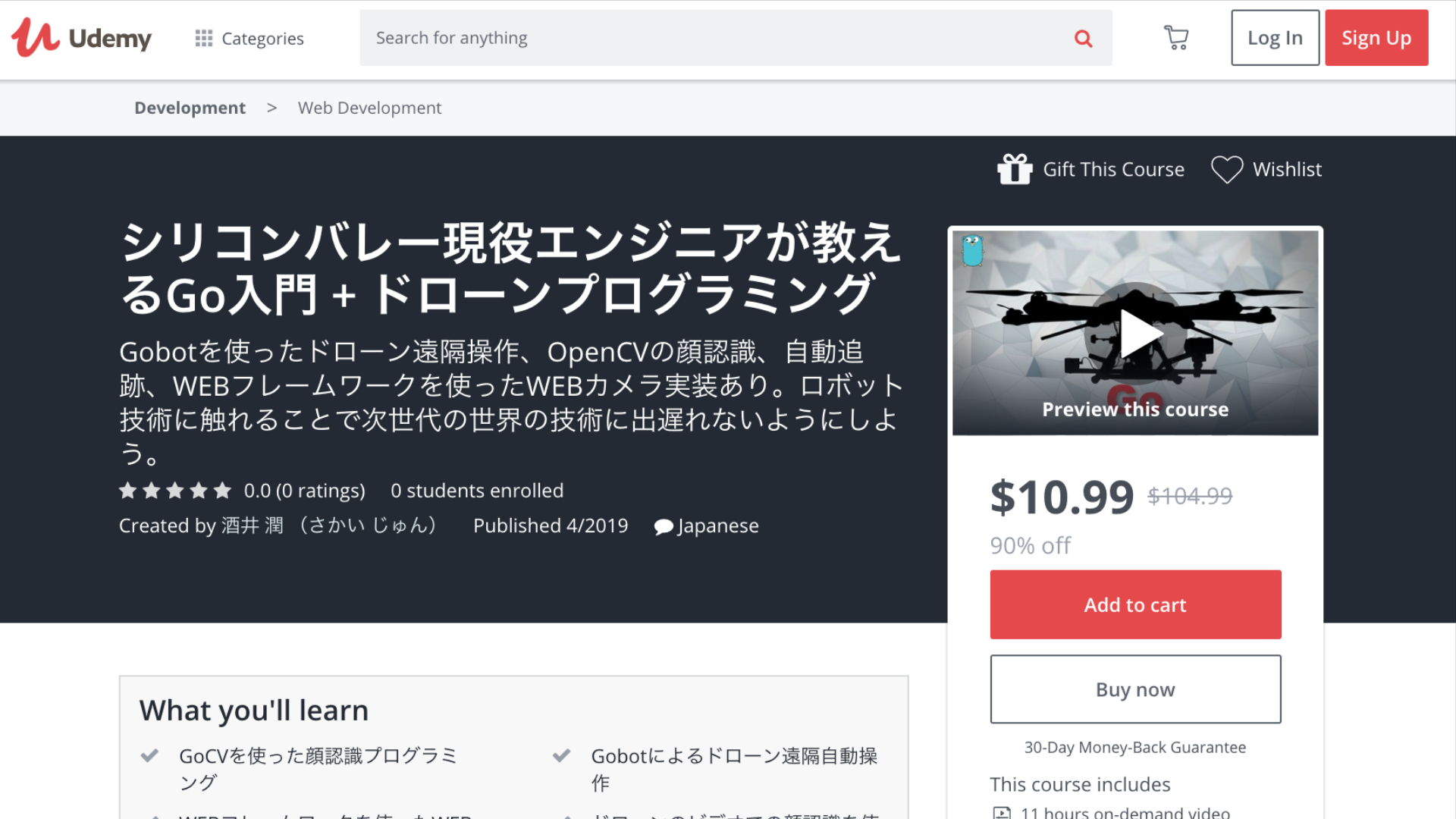 本コースでは、GoとGobotを使ったドローンプログラミングを行います。Gobotに慣れれば、Gobotに対応する他のロボットも扱えるようになるかと思います。今、ロボット時代と言われるよう、今後AIとロボットが発展するのは明らかです。今回使用するドローンはトーイドローンなので、高度なロボットという難しいものではなく、Goに慣れながら、簡易的に室内などでドローンを動かしてみようというレベルになっております。日本でもお子さんのプログラミング教育にも注目されてきておりますが、このコースで習ったドローンブログラミングをお子さんに教えてあげるのも良いかと思います。