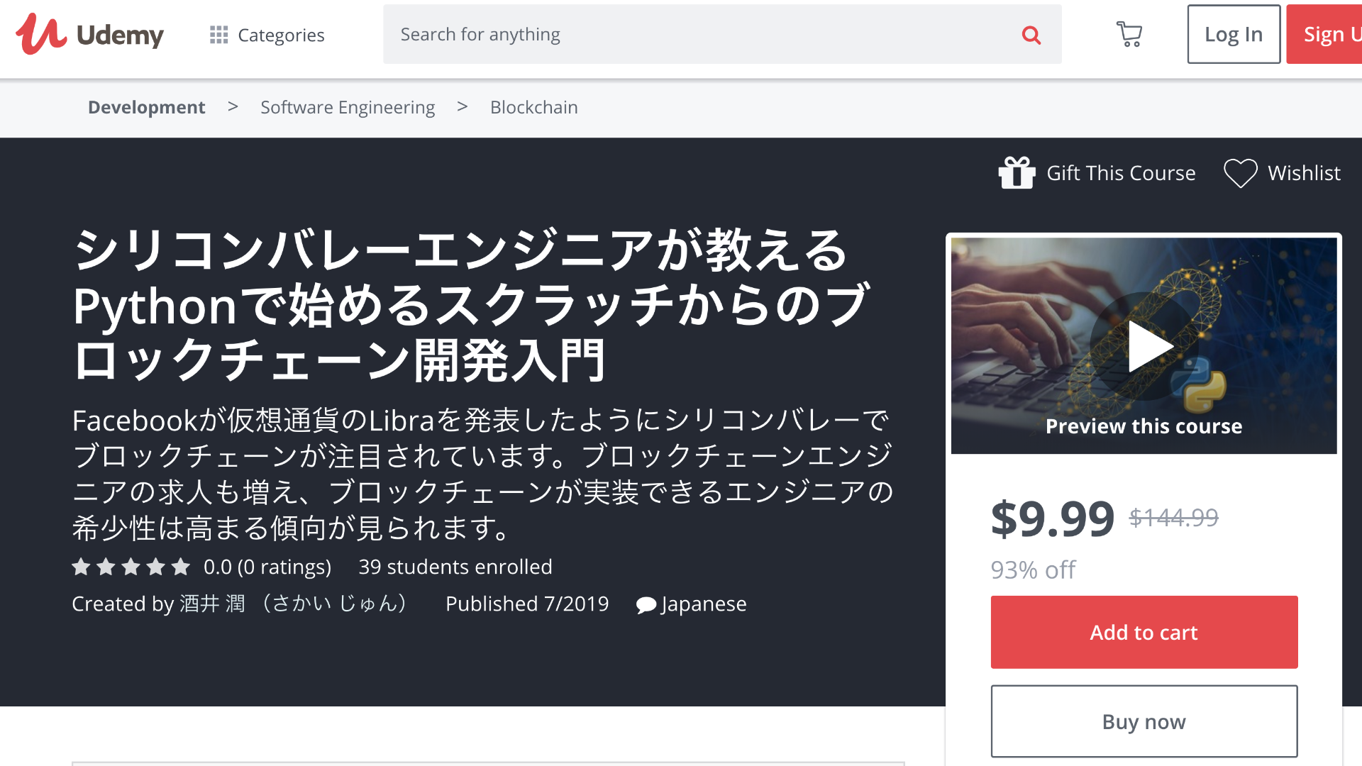 本コースでは、Pythonを使いスクラッチからブロックチェーンを開発します。Blockchain技術は難しい技術資料が多く、わかりにくい点が多々ありますが、実際にコーディングして実装すること で理解がしやすくなることかと思います。また、ブロックチェーンができるエンジニアの求人はシリコンバレーでも増えており、今後ブロックチェーンが開発できるエンジニアの希少性が高まることかと思います。プロックチ ェーンのエンジニアならないとしても、ブロックチェーンを実装された経験は就職や転職の際に提出する履歴書の中でも目立つものとなることかと思います。この機会にブロックチェーンの実装をしてみませんか。