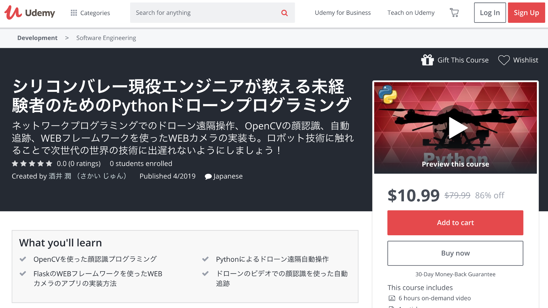 本コースでは、Python3を使ったドローンプログラミングを行います。今、ロボット時代と言われるよう、今後AIとロボットが発展するのは明らかです。今回使用するドローンはトーイドローンなので、高度なロボットという難しいものではなく、Pythonに慣れながら、簡易的に室内などでドローンを動かしてみようというレベルになっております。日本でもお子さんのプログラミング教育にも注目されてきておりますが、このコースで習ったドローンブログラミングをお子さんに教えてあげるのも良いかと思います。